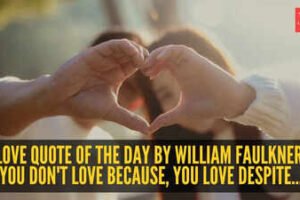 Love quote of the day by William Faulkner: “You don’t love because, you love despite…” |