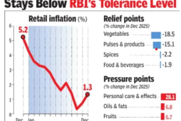 NEW DELHI: Retail inflation inched up to a three-month high in Dec, led by narrowing deflation in some food prices and fading favourable base effect, but remained below the Reserve Bank of India’s (RBI) tolerance level for the fourth month in a row.Data released by the National Statistics Office (NSO) on Monday showed retail inflation,…